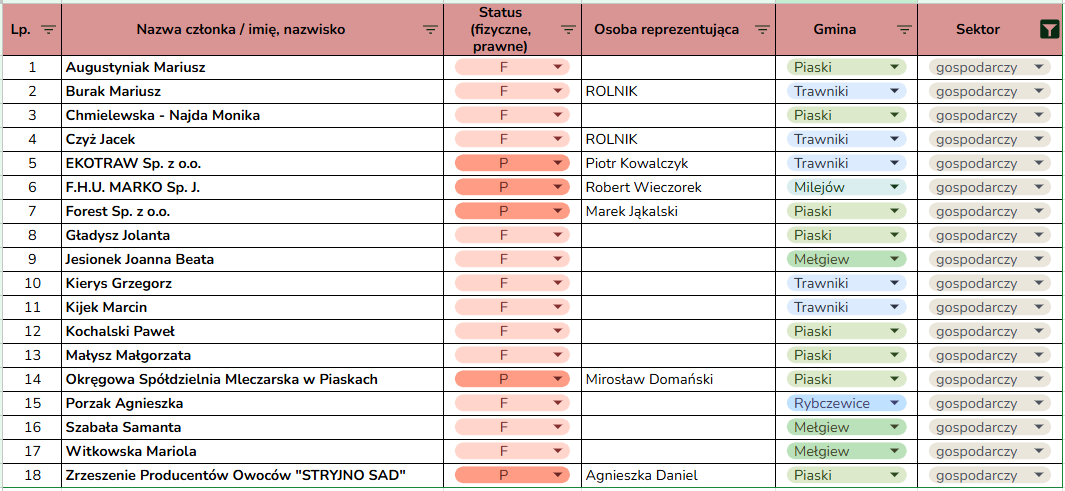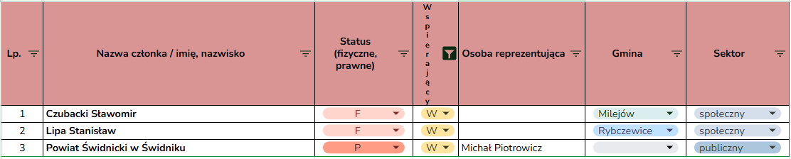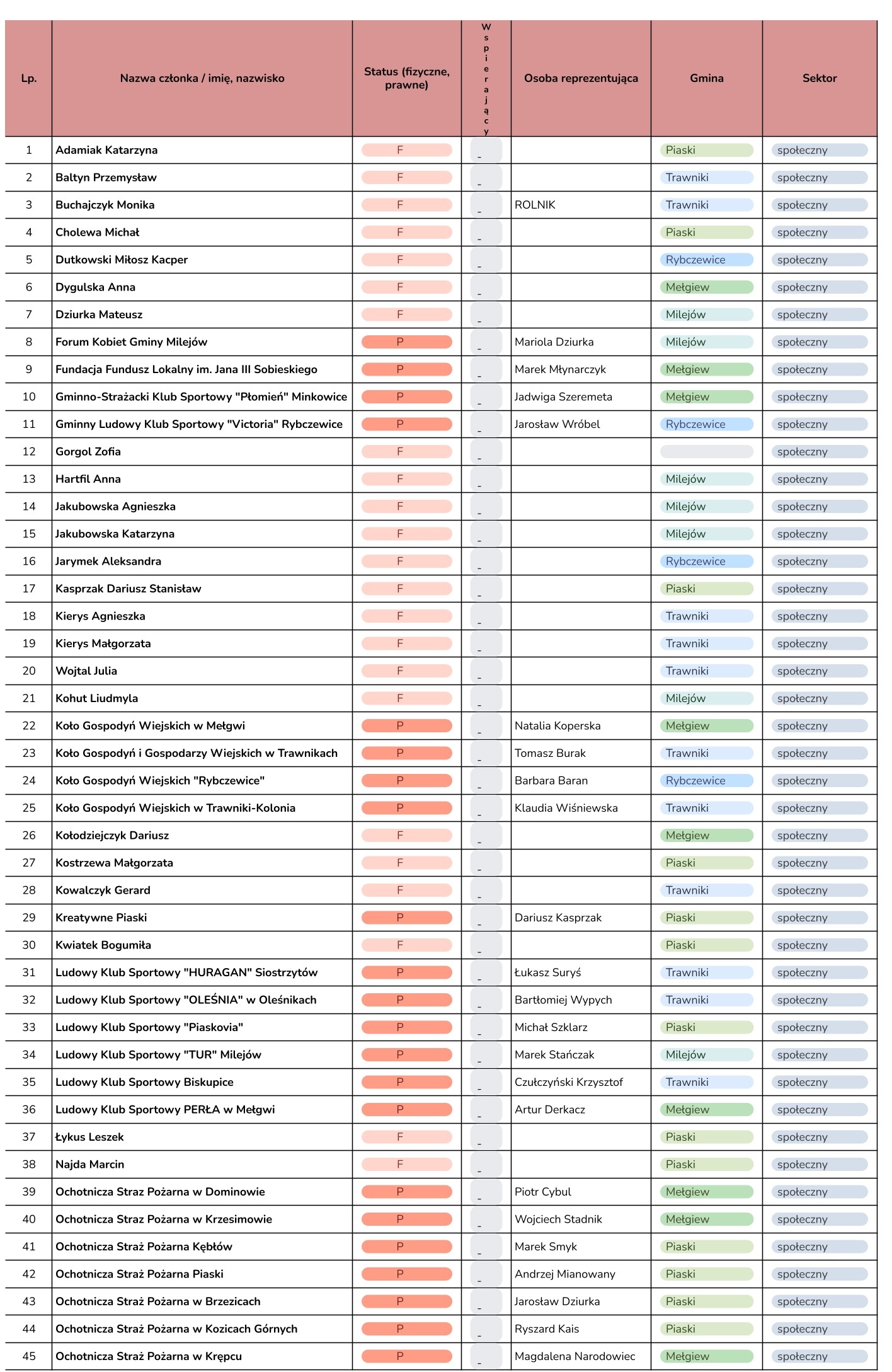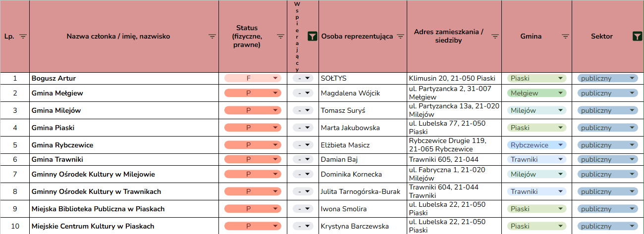 (lista Członków LGD zaktualizowana w dniu 20.03.2026 r.)