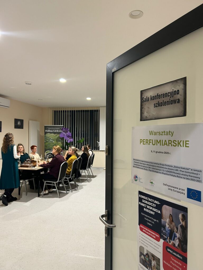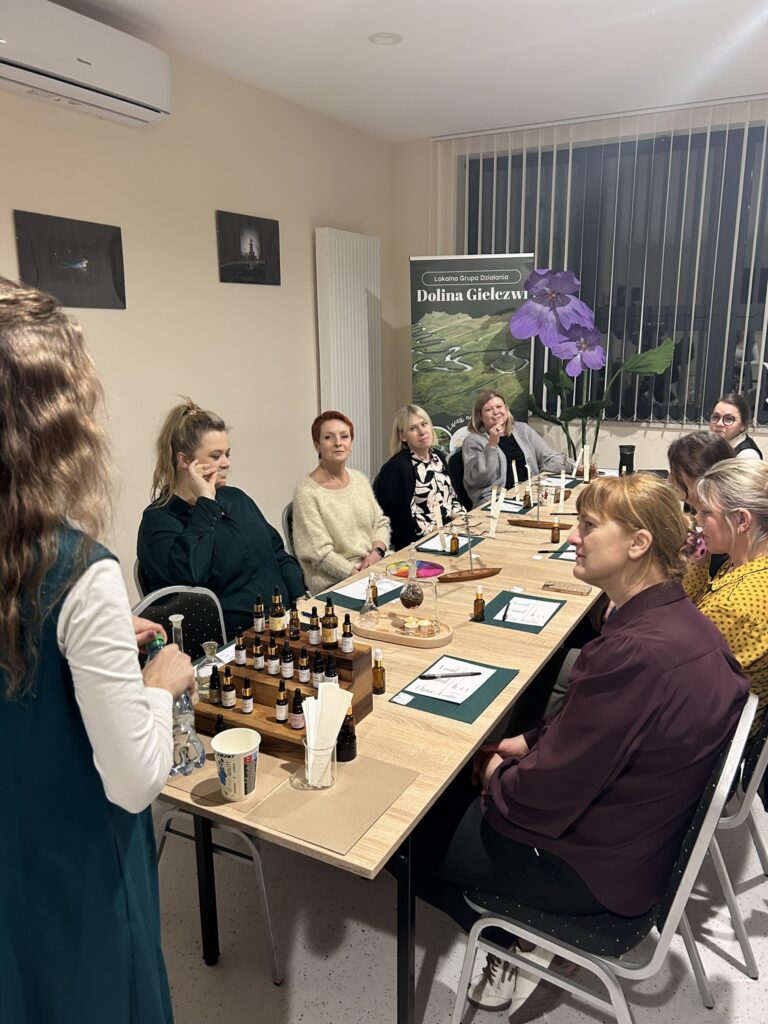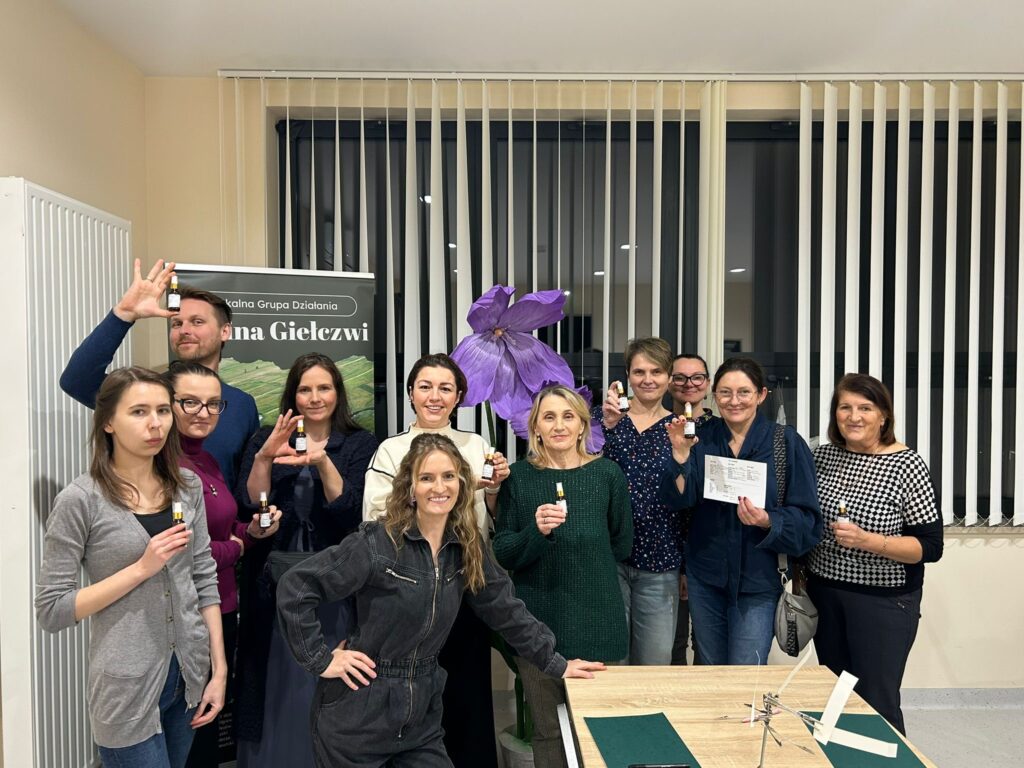 Warsztaty perfumiarskie zostały zrealizowane w ramach działań aktywizujących mieszkańców obszaru LGD „Dolina Giełczwi”.