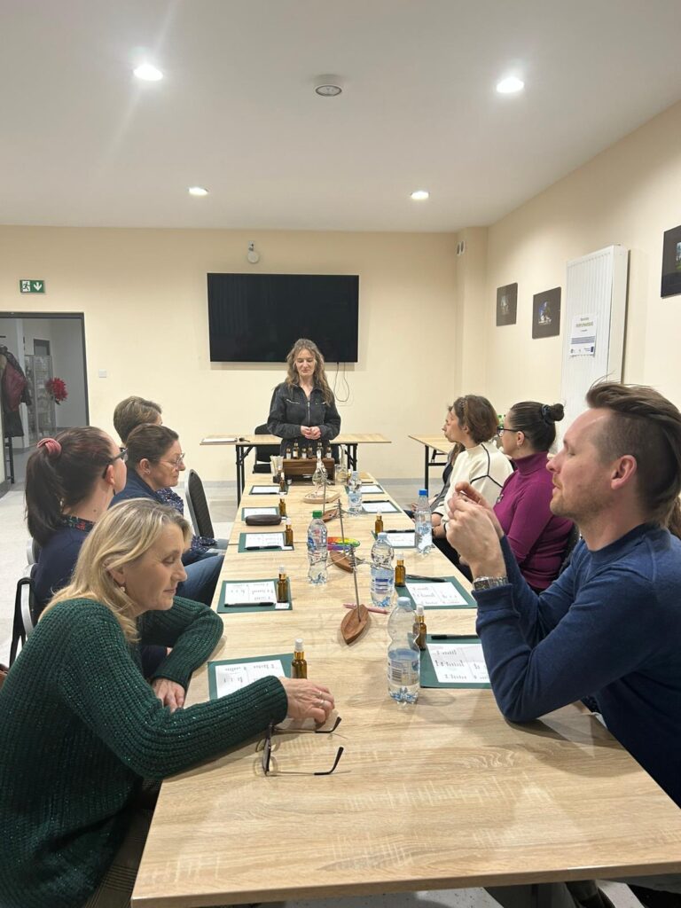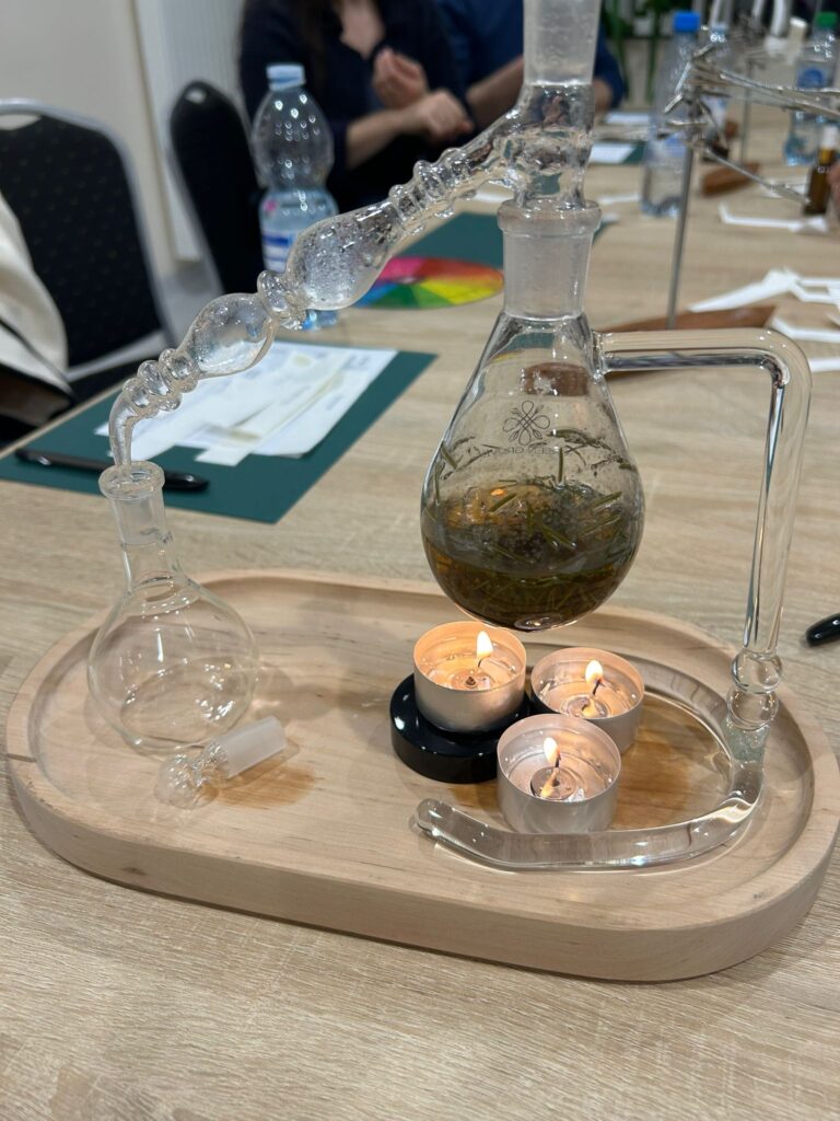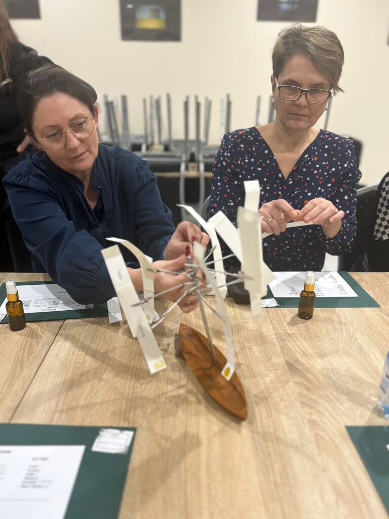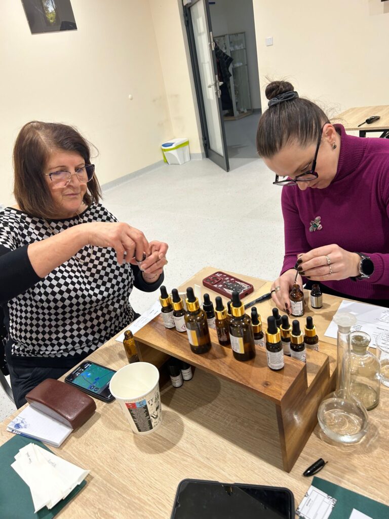Celem warsztatów było zapoznanie uczestników z podstawami perfumiarstwa naturalnego, w tym z teorią kompozycji zapachowych oraz charakterystyką poszczególnych nut zapachowych. Uczestnicy poznawali właściwości naturalnych olejków eterycznych i absolutów – od świeżych, cytrusowych akcentów, przez nuty ziołowe, po głębokie i trwałe esencje drzewne. Istotnym elementem zajęć była część praktyczna, podczas której każdy z uczestników, przy wsparciu prowadzącej, stworzył własną, autorską kompozycję zapachową. Gotowe perfumy stanowiły efekt samodzielnej pracy twórczej i zostały zabrane przez uczestników do dalszego użytkowania. Warsztaty miały charakter edukacyjno-doświadczalny i pozwoliły uczestnikom lepiej zrozumieć złożoność procesu tworzenia perfum oraz znaczenie umiejętnego łączenia nut zapachowych.